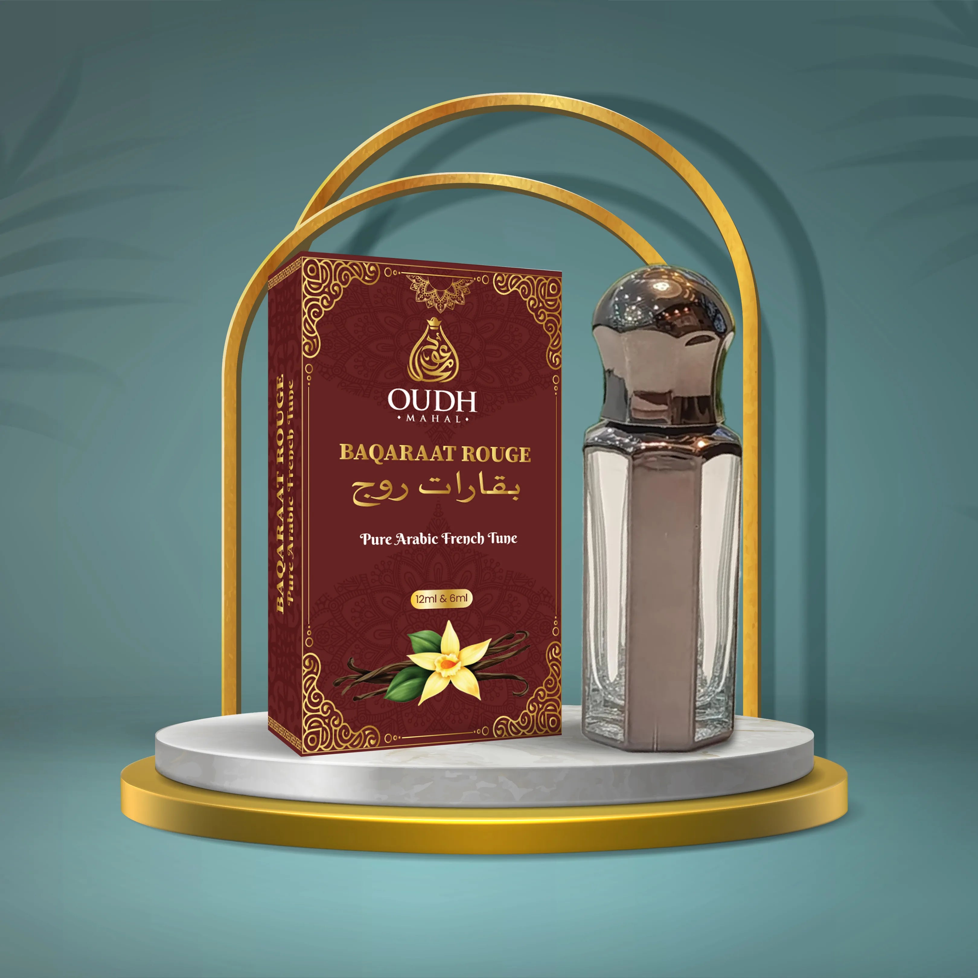 Baqaraat Rouge Premium Attar by Oudh Mahal is a luxurious blend inspired by pure Arabic and French fragrance traditions. This premium attar offers a rich, floral, and musky aroma with a smooth sweetness that feels elegant, modern, and irresistibly refined.